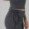Die Cozy Pants ist aus anpassungsfähigem und blickdichtem Stoff. Sie lässt sich am umklappbaren Bund Einstellung und ist dort mit unserem Logo Schriftzug veredelt.